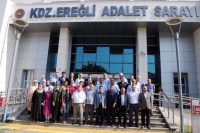 Karadeniz Ereğli'de Pazar günü gerçekleştirilen AK Parti 5. Olağan İlçe Kongresinde, İlçe Başkanlığında üçüncü dönemine seçilen Mehmet Fatih Çakır, bugün Yönetim Kurulu Üyeleri ile birlikte Adliye Sarayına giderek mazbatasını aldı.
