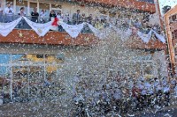 Düzenlenen özel törenin sonunda, kolej yöneticileri ellerindeki beyaz güvercinleri gökyüzüne bırakırken, öğrenciler de balon uçurarak etkinliğe ayrı bir renk kattı.