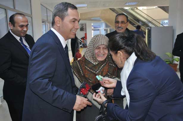 Uysal ailesi, katları tek tek gezerek belediyede çalışan kadın personelin günlerini kutladı.