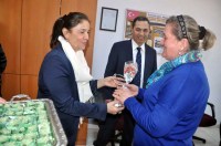 Başkan Uysal ve eşi Sevim Uysal, ilk olarak Ereğli Belediyesi'nde çalışan kadınları ziyaret edip karanfil verdi ve çikolata ikramında bulundu.