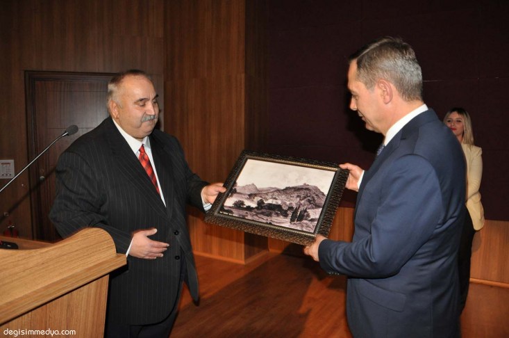 Gecede Uysal'a tüm personel adına, 1850 yılında Rus gravür sanatçısı tarafından çizilen Ereğli'nin genel görünümü tablosu hediye edilirken, belediye personeli gece boyunca eğlendi.
