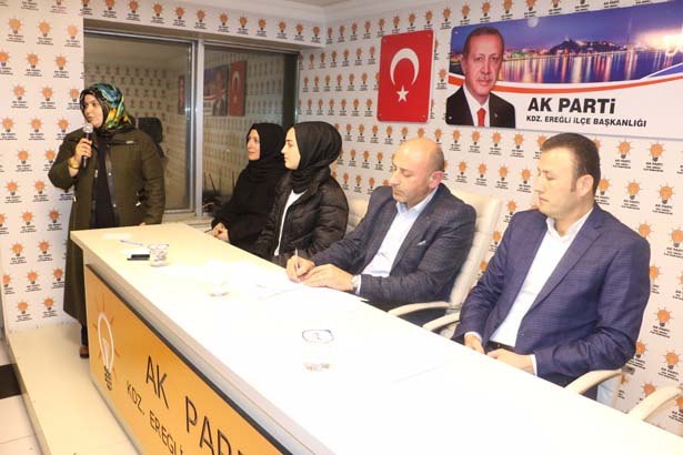 AK Parti İlçe Başkanı, teşkilat olarak yürüttükleri çalışmalar hakkında da "2019 yılında, önümüzde 2 tane önemli seçim var. Bir tanesi 500 günün altına düştü. Bir değişiklik olmazsa 24 Mart 2019'da Belediye seçimleri var, ardından Kasım'da hem Milletvekilliği hem de Cumhurbaşkanlığı seçimi var. Biz teşkilatlarımızı daha zinde ve daha hazır hale getireceğiz. Her an seçim olacakmış gibi de hazırız. Yani 2019'da Ereğli İlçe Belediyemiz ile birlikte, eğer beldelerde kapanma olmazsa 3 Beldeye de talibiz. Yani 4'te 4 yapmak istiyoruz. Bununla ilgili artılarımızı eksilerimizi bugünden konuşup, seçimlerden inşallah zaferle çıkmak istiyoruz" dedi.