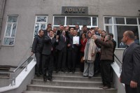 Candan ve Özcan Ulupınar ile birlikte alarak belediye binası önüne gelen