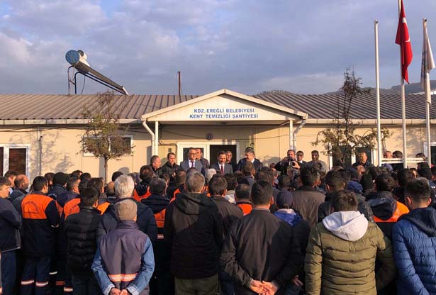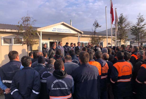 Türkiye'de hangi belediye işçilerine hangi hakları veriyorsa bizler daha fazlasını verdik, vermeye de devam edeceğiz. Aynı haklarla, haklarınız korunarak kadroya geçiş yapacaksınız. Sizler daha önceki yıllarda Ereğli'yi tertemiz yaptınız ve tüm kadronuzla beraber ödüller aldınız. Aynı şekilde bir takım anlayışı içinde çalışmalarınıza devam edin. Ben sizin içinizden birisiyim.