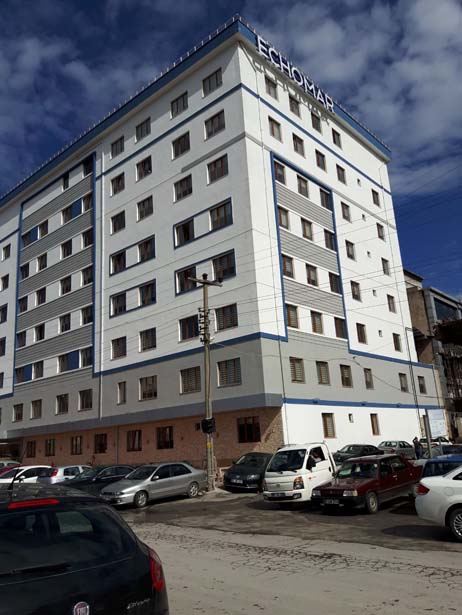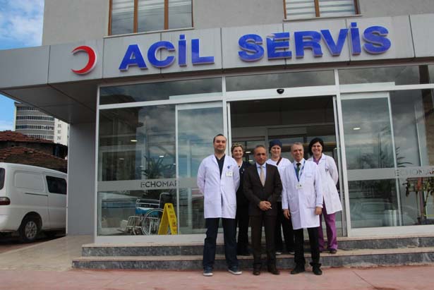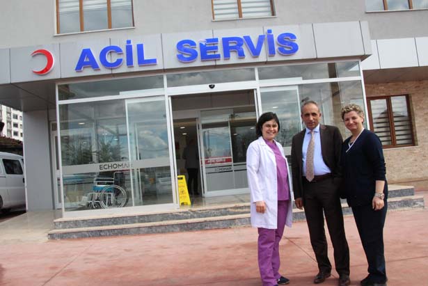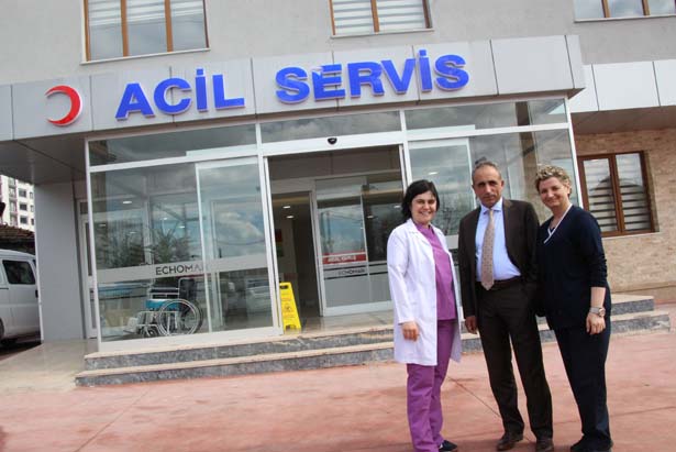 Bina ACİL önünde Echomar Hastanesi Genel Müdürü Kaya Karatepe ve Başhekim Kaya