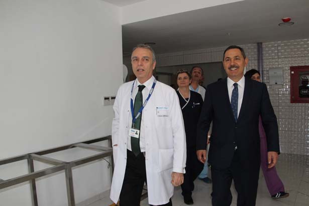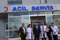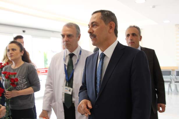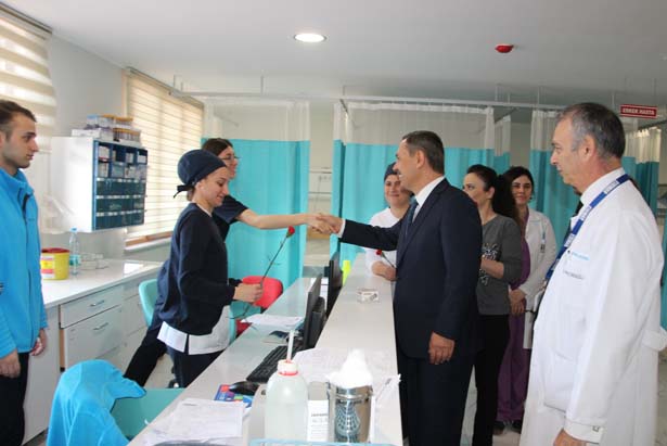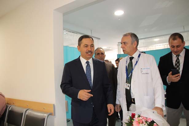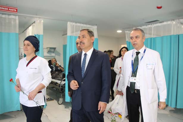 ek binasını da ziyaret etti. Yeni Ek binadaki ACİL kısmını ziyaret ederek, çalışmalar hakkında bilgi alırken, hasta ve