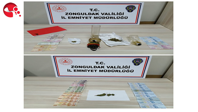 Zonguldak İl Emniyet Müdürlüğü Narkotik Suçlarla Mücadele Şube Müdürlüğü ve Ereğli Narkotik Suçlarla Mücadele Grup Amirliği Kdz Ereğli ve Merkez bölgesinde yaptıkları operasyonda; U.T. (31) ve B.İ. (29) isimli şüpheliler; yapılan takip sonucu Narkotimlerce yakalandı. Operasyonda 15 gram uyuşturucu ve uyarıcı madde, 2 adet uyuşturucu kullanma aparatı ve suçtan elde edilen 2 bin TL ele geçirildi. Uyuşturucu Madde sattığı tespit edilen U.T. (31) ve B.İ. (29) isimli şahıslar gözaltındaki işlemlerinin ardından adliyeye sevk edildi. Şüpheliler tutuklanarak cezaevine gönderildi.