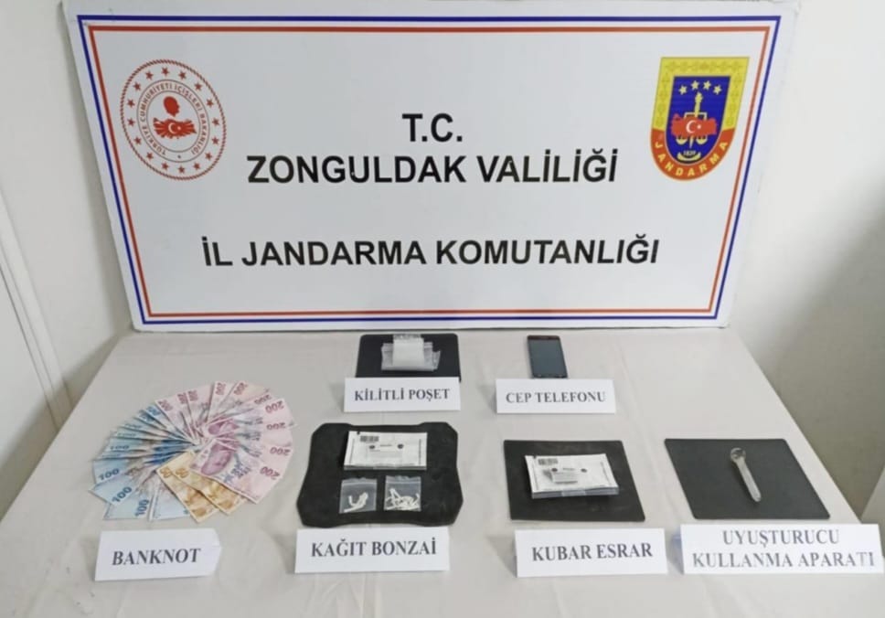 Zonguldak İl Jandarma Komutanlığı Ekiplerince, 27 Şubat 2023 tarihinde, Gökçebey ilçesi mülki sınırları içerisinde Adli Makamlardan alınan arama kararına istinaden (2) şahsın aracında, ev ve eklentilerinde yapılan arama sonucunda; (7) gr. bonzai, (5) gr. kubar esrar, (1) adet uyuşturucu kullanma aparatı ve suç geliri olduğu değerlendirilen (3.155) TL ele geçirilmiştir. Olayla ilgili Cumhuriyet Başsavcılığının talimatları doğrultusunda (1) şüpheli şahıs ifadesi alınarak serbest bırakılmış, (1) şüpheli şahıs ise sevk edildiği Adli Makamlarca tutuklanmıştır" denildi.