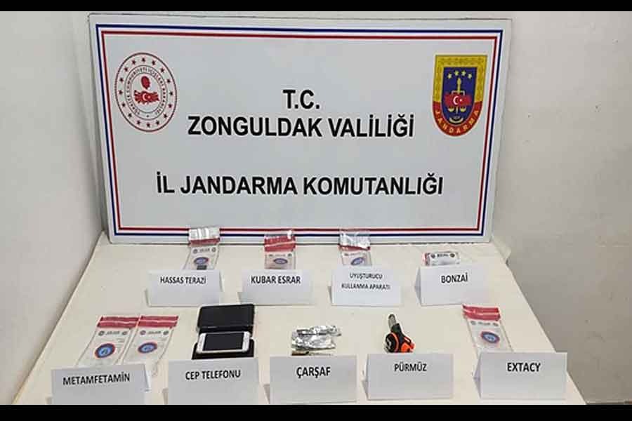 “Zonguldak İl Jandarma Komutanlığı ekiplerince, 17 Mayıs 2023 tarihinde, Kozlu ilçesi mülki sınırları içerisinde icra edilen operasyonda; (30) gr. bonzai, (4) adet ekstazi hap, (15) gr. metamfetamin, (10) gr. esrar, (1) adet uyuşturucu madde kullanma aparatı ele geçirilmiş ve (4) şüpheli şahıs gözaltına alınmıştır. Olayla ilgili Cumhuriyet Başsavcılığının talimatları doğrultusunda, Adli Makamlara sevk edilen (4) şüpheli şahıstan (3)’ü Adli Kontrol Şartı ile serbest bırakılmış, (1)’i ise tutuklanarak Ceza İnfaz Kurumuna teslim edilmiştir” denildi.