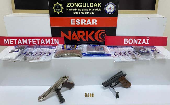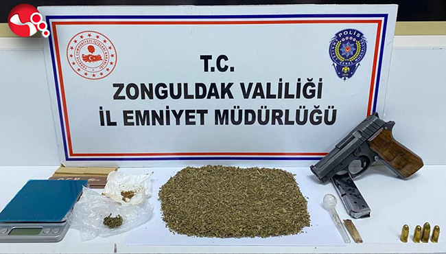 Edinilen bilgiye göre, Zonguldak İl Emniyet Müdürlüğü ekipleri il merkezinde operasyon gerçekleştirdi. Narkotik Suçlarla Mücadele Şube Müdürlüğü Ekipleri ve Çarşı Mahalle Bekçileri tarafından A.K., B.K. ve İ.M. isimli şüpheli şahıslar yakalandı. Operasyonda 2 Adet tabanca, 4 adet fişek, 2 adet uyuşturucu kullanma aparatı, 2 adet hassas terazi ve 50,62 gram uyuşturucu ve uyarıcı madde ele geçirildi. Üç şüpheli uyuşturucu veya uyarıcı madde ticareti yapmak suçundan gözaltına alındı.