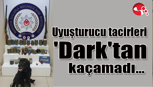 Zonguldak İl Emniyet Müdürlüğü ile Cumhuriyet Başsavcılığının yürütmüş olduğu soruşturma kapsamında Narkotik Şube Müdürlüğü ekipleri, narkotik köpeği "Dark" ile daha önce belirlenen adreslere gece saatlerinde operasyon düzenledi. Düzenlenen operasyonlarda K.B., H.G., M.K. ve U.A. gözaltına alınırken, Dark'ın yaptığı aramalarda ise 3 kilo uyuşturucu ve 95 adet uyuşturucu hap ele geçirildi. Operasyonda ayrıca 2 adet av tüfeği de ele geçildi.