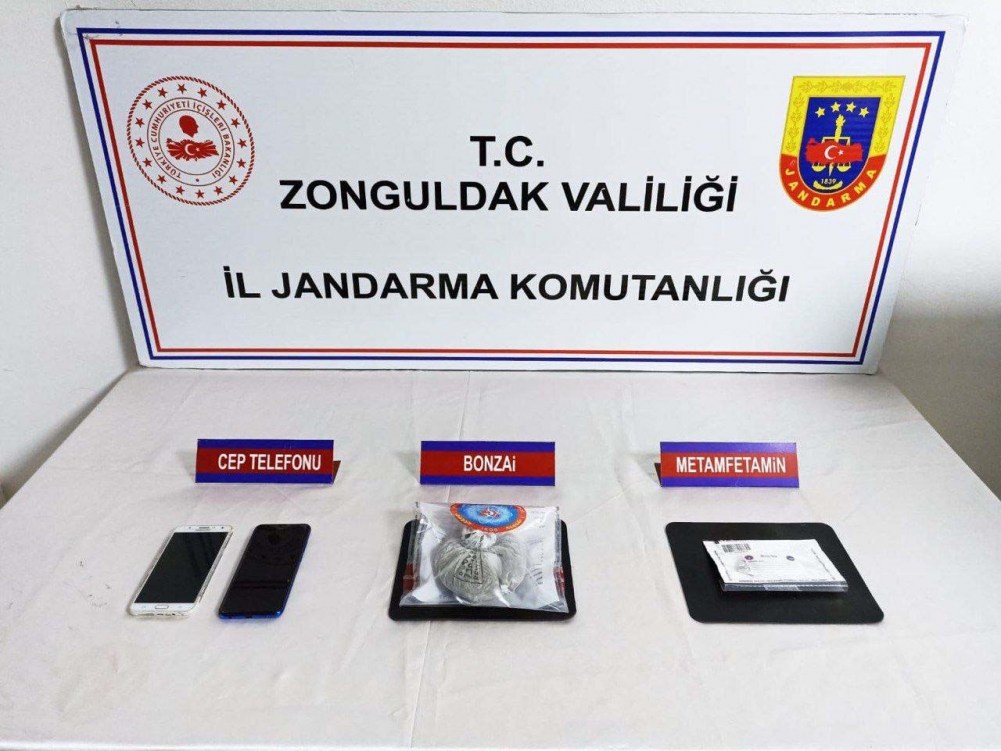 ; “Zonguldak İl Jandarma Komutanlığı ekiplerince, 24 Mayıs 2023 tarihinde, Gökçebey ilçesi mülki sınırları içerisinde icra edilen operasyonda; (70) gr. Bonzai, (5) gram metamfetamin, (2) adet cep telefonu ele geçirilmiş ve (1) şüpheli şahıs gözaltına alınmıştır. Olayla ilgili Cumhuriyet Başsavcılığının talimatı doğrultusunda, Adli Makamlara sevk edilen (1) şüpheli şahıs tutuklanarak Ceza İnfaz Kurumuna sevk edilmiştir.” denildi.