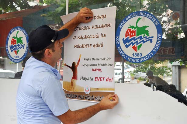 Karadeniz Ereğli Belediyesi Zabıta Müdürlüğü, uyuşturucuya karşı mücadeleye destek verdi, şehrin değişik noktalarına bilgilendirici afişler astı.