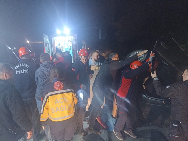 Zonguldak'ın Ereğli ilçesinde uyuya kalan otomobil sürücüsü yoldan çıkarak su kanalına düştü. Sağlık ekiplerinin ilk müdahalesinin ardından yaralılar hastaneye kaldırıldı.
