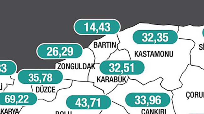 Sağlık Bakanı Fahrettin Koca tarafından açıklanan son günlük korona virüs tablosu ve 10-16 Temmuz illere göre her 100 bin kişide görülen Covid-19 vaka sayısı endişe verici boyutlara ulaştı. Zonguldak’ta açıklanan son insidans haritasında bir önceki haftada 25,03 olan vaka sayısı 26,29’ a yükseldi.