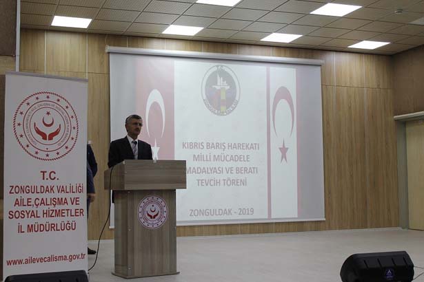 Kuzey Kıbrıs Türk Cumhuriyeti tarafından Kıbrıs Barış Harekâtına katılan gazilere takdim edilmek üzere gönderilen Milli Mücadele Madalyası ve beratları Vali Erdoğan Bektaş tarafından hak sahibi gazilere takdim edildi.