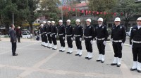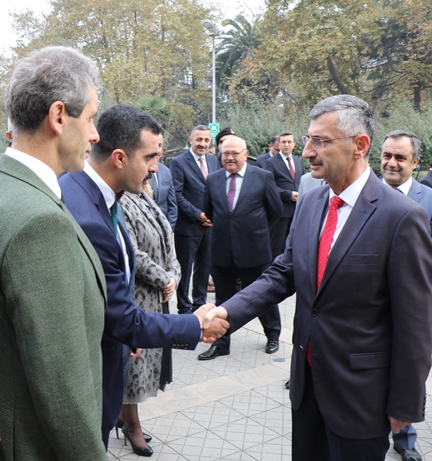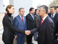 Valilik binası önünde karşılandı. Polis tören mangası tarafından karşılanan