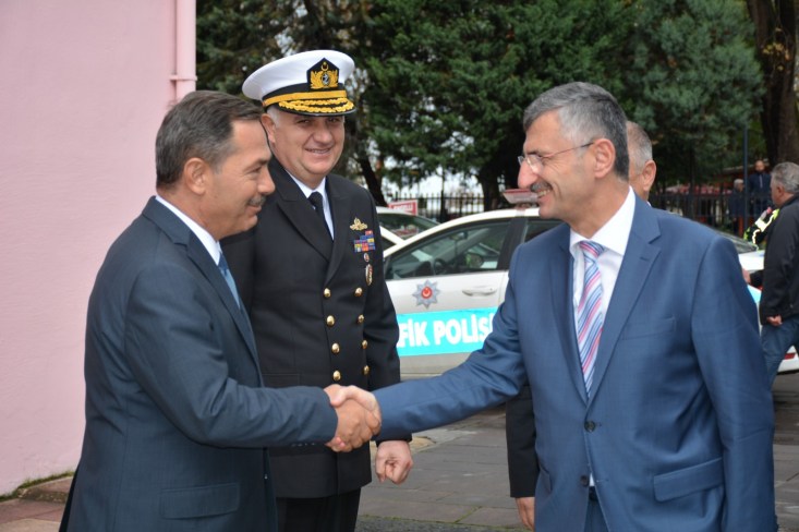 Komutanı Tuğamiral Özden Yazıcıoğlu, ilçe protokolü tarafından karşılandı. Bir süre kaymakamlık makamında ilçe hakkında