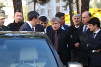 Ahmet Çınar, beraberindeki heyetle birlikte okul bahçesinde incelemelerde