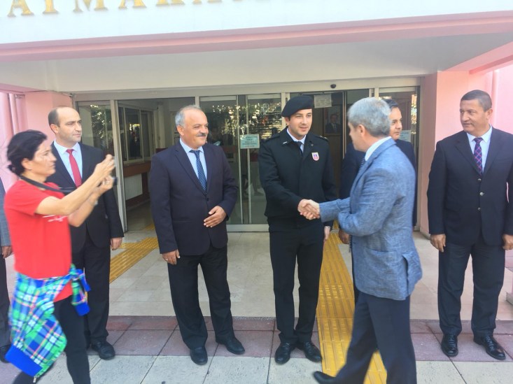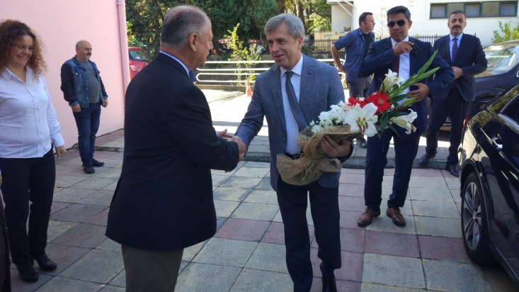 Zonguldak Valisi Ahmet Çınar'ı kaymakamlık önünde karşılayarak "İlçemize hoş