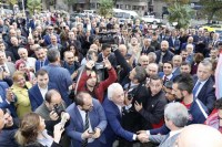 onlarca kişi Valilik binası önüne adeta akın etti.
