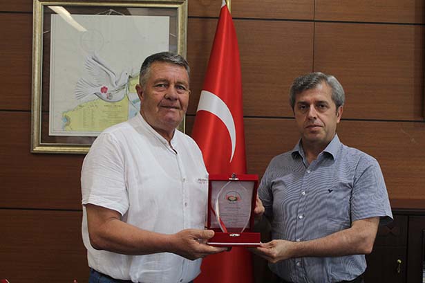 Muhtarlarımıza verdiği destekten ötürü Türkiye Muhtarlar Derneği Konfederasyonu Genel Başkanı Hüseyin Akdeniz' in Zonguldak Valisi Ahmet Çınar' a takdim edilmek üzere gönderdiği plaketi sunan Şerafettin Nas, Vali Çınar'a teşekkürlerini iletti.