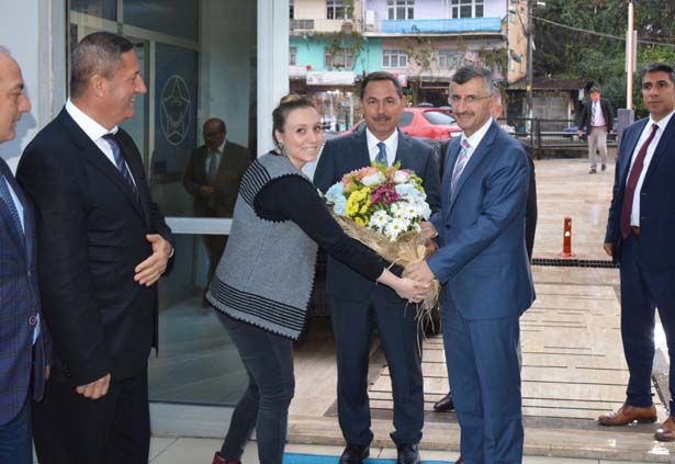 karşıladığı Vali Erdoğan Bektaş, beraberinde İlçe Kaymakamı İsmail Çorumluoğlu
