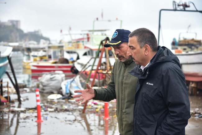 Vali Hacıbektaşoğlu, olumsuz hava koşullarından etkilenen bölgelerde incelemeler yaparak, balıkçılarla bir araya geldi ve onlara geçmiş olsun dileklerini iletti.