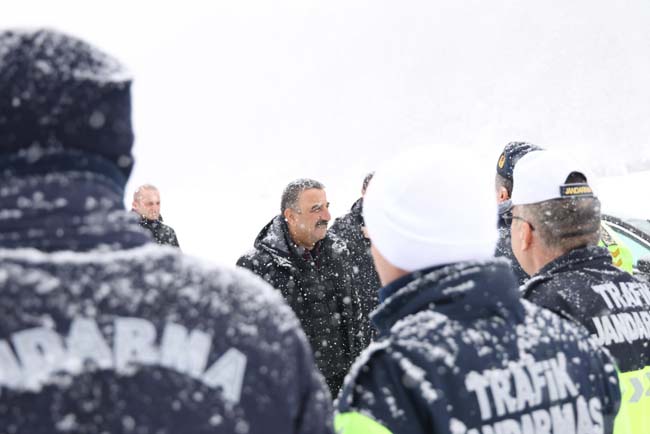 Zonguldak Valisi Osman Hacıbektaşoğlu, karla mücadele çalışmalarını sürdüren ekiplerle bir araya geldi.