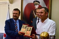Zonguldak Valisi Ali Kaban 2. Lig'e yükselen Zonguldakspor Kulüp Başkanı ve futbolcularını ziyaret ederek 200 bin TL'lik primi hediye etti.