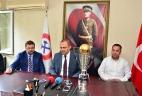 ve kupayı getirdiler. Daha önce bu kupa neden gelmiyor diye başkanımıza