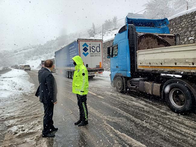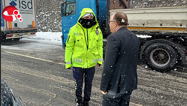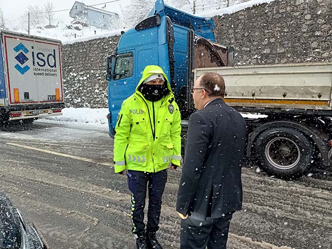 Vali Tutulmaz, karla mücadele ekiplerinin yaptığı kar küreme, temizleme çalışmaları ile Bölge Trafik Ekiplerinin yol güvenliğinin sağlanmasına yönelik trafik düzenleme çalışmalarını denetledi,