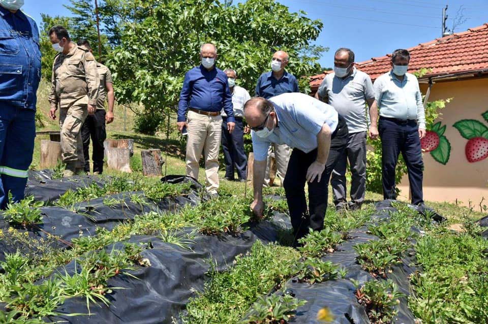 Vali Mustafa Tutulmaz, daha sonra ilçeye bağlı Kocaali Köyü Ahmetler Mahallesi'nde Osmanlı Çileği yetiştiriciliği proje alanında incelemelerde bulunarak yetkililerden bilgi aldı.