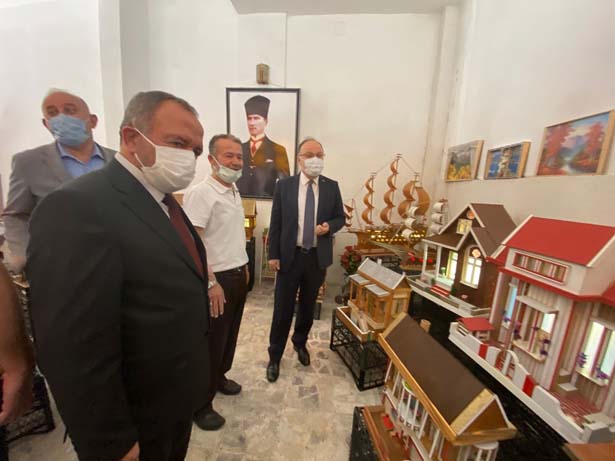 Ardından Zonguldak Valisi Mustafa Tutulmaz ve protokol üyeleri Gökçebey ilçesinde Cevdet Aydemir’in geri dönüşüm malzemelerinden yaptığı maket evleri inceleyerek, Gökçebey Çok Programlı Anadolu Lisesinde muhtarlarla biraya geldi.