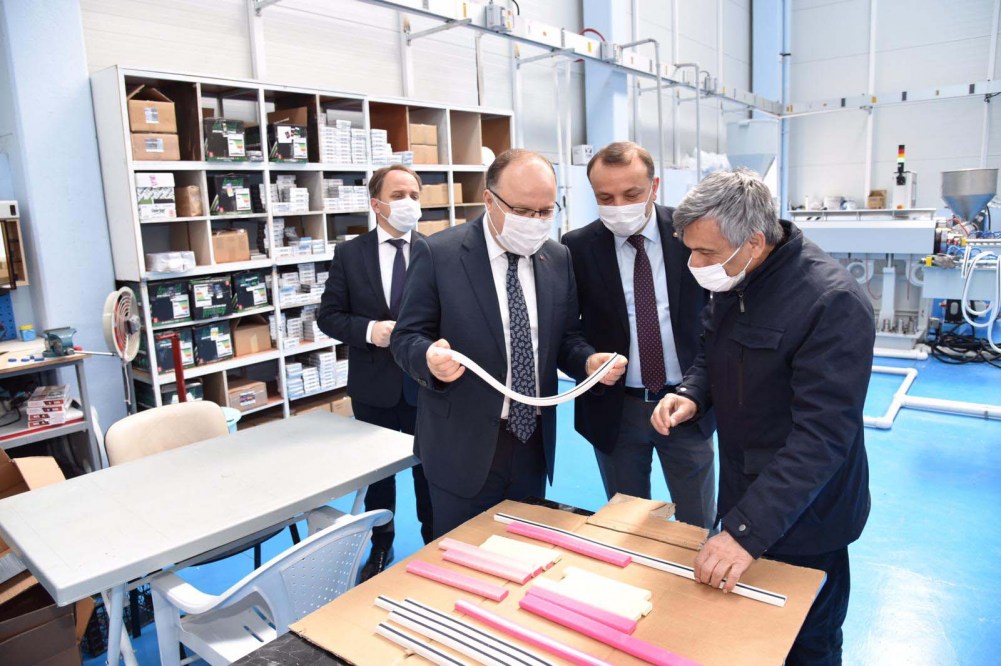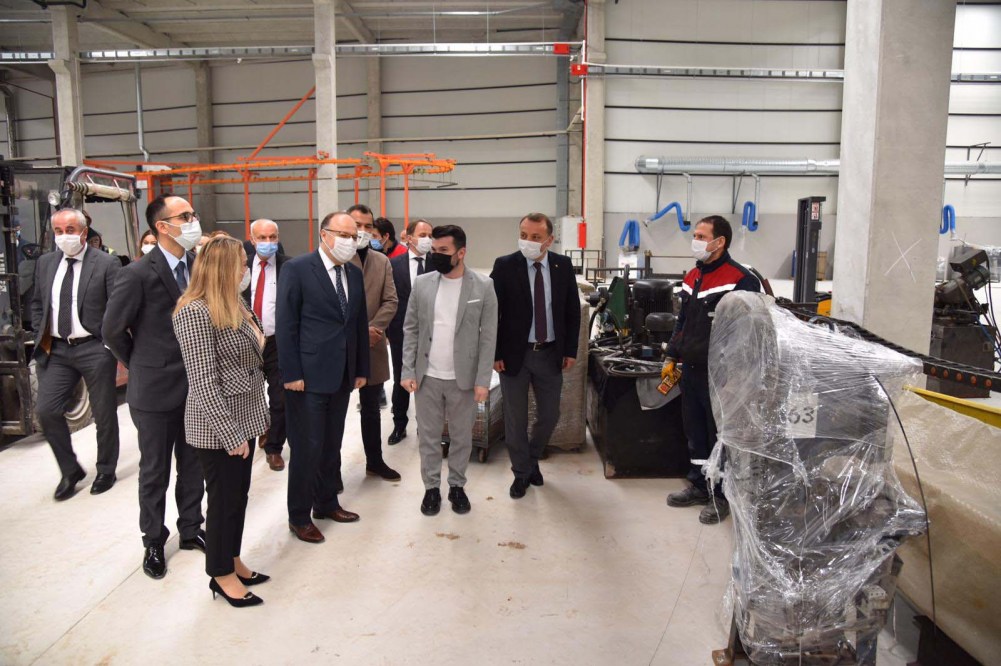 Alaplı OSB’deki fındık, raf ve silgi fabrikalarını da gezen Vali Tutulmaz, Alaplı Organize Sanayi Bölgesi 2021 yılı ilk müteşebbis heyet toplantısına başkanlık etti.