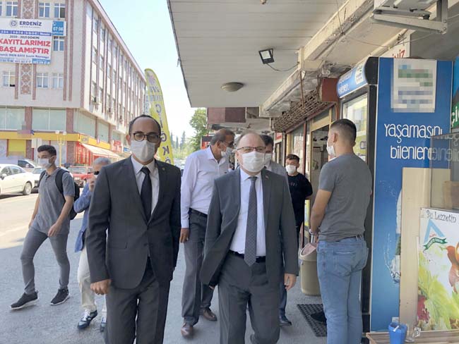 Yapılan denetimlerde Vali Tutulmaz, esnafları ve vatandaşları maske hijyen ve sosyal mesafe konusunda tek tek uyardı ve duyarlı olmaları gerektiğini ifade etti.