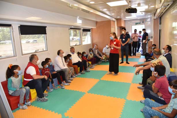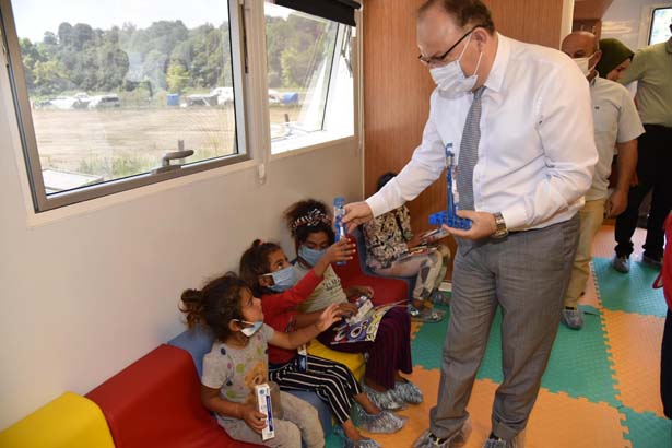 Tutulmaz ve Milletvekilleri daha sonra Kızılay Genel Başkanlığı’nca mevsimlik tarım işçilerinin çocukları için gönderilen, içerisinde eğitim verilen ve sosyal faaliyetler yapılabilen Çocuk Dostu Alan Tırında çocuklarla bir araya gelinerek, hediyeler verildi. Akabinde mevsimlik tarım işçileri ziyaret edildi.