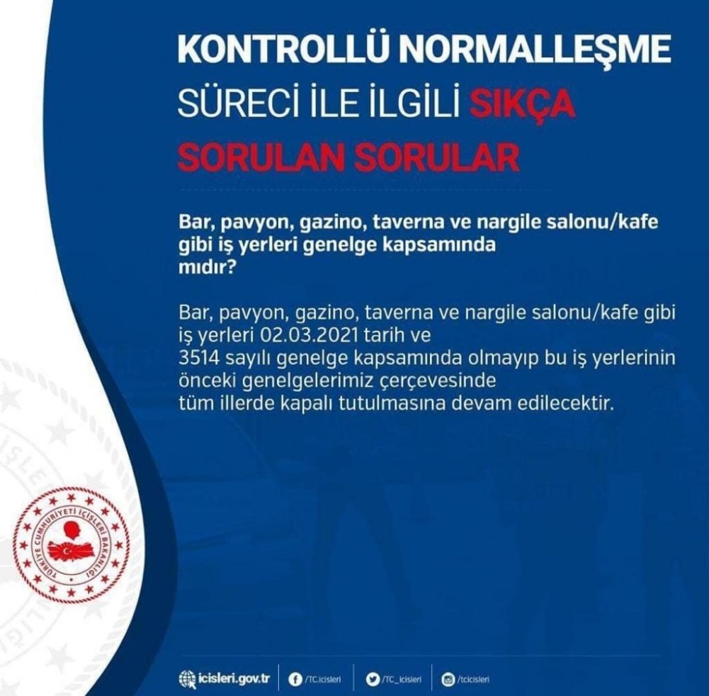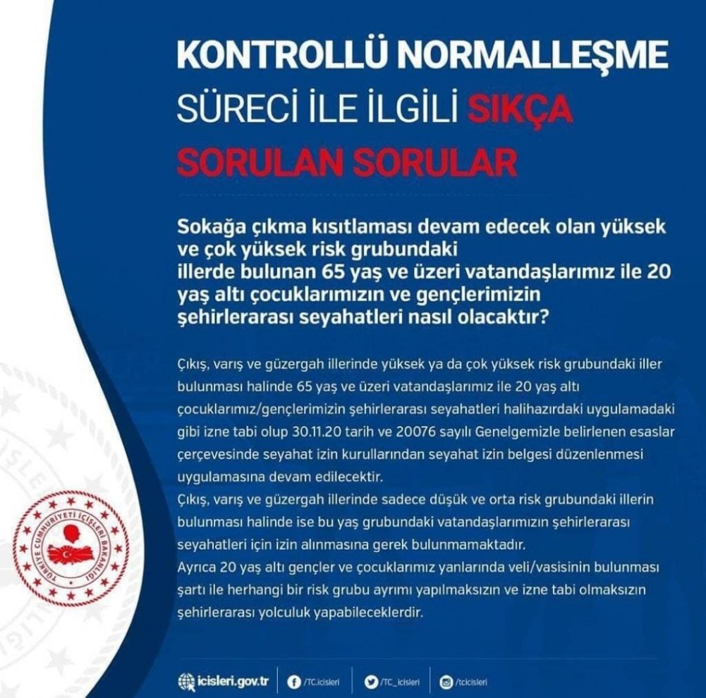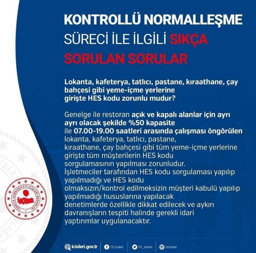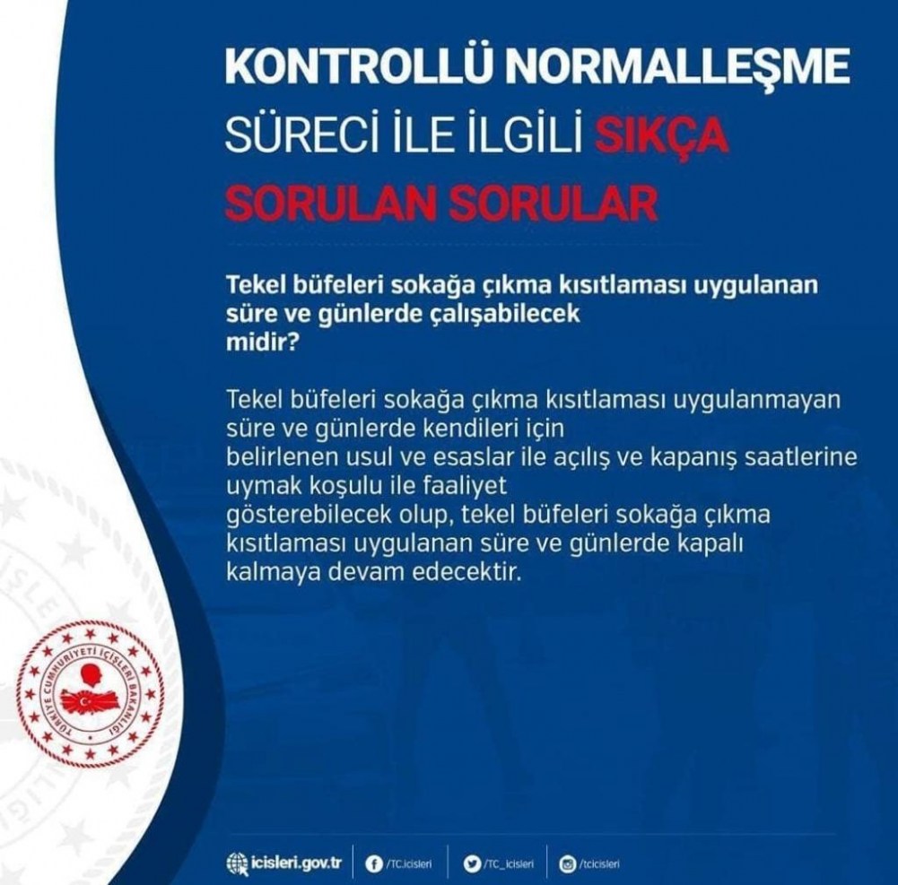 Yapılan açıklamada; “Salgın nedeniyle kontrollü normalleşme dönemindeyiz. Hayatımızın her alanının normalleşmesi için tüm kurallara uymalıyız. Sağlığımız için hepimiz birbirimize karşı sorumluyuz. İnşallah birlikte başaracağız” denildi.