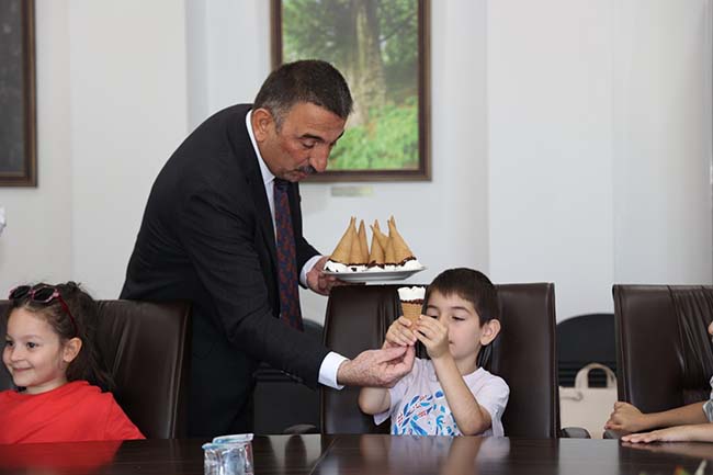 Anasınıfı öğretmeni Diren Kılav’ın rehberliğinde gerçekleşen ziyarette çocuklar, hem Valilik makamını tanıdı hem de Vali Hacıbektaşoğlu ile sohbet etme fırsatı buldu. Öğretmenlerinin yönelttiği, "Kuralları uygulayan kişiyi bulsak, ne yapmak isterdiniz?" sorusuna, "Onunla dondurma yemeyi çok isteriz" şeklinde yanıt veren öğrenciler, bu hayallerinin peşinden giderek Vali Hacıbektaşoğlu ile bir araya geldi.