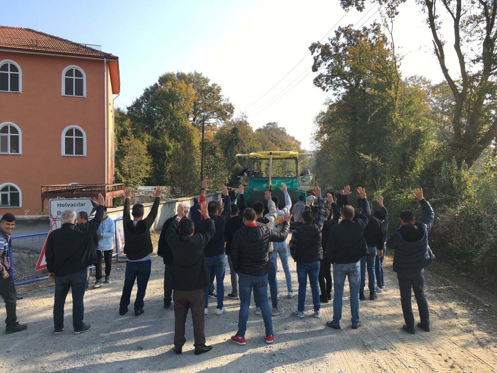 Zonguldak’ın Çaycuma ilçesi Perşembe beldesine bağlı Basat köyü, Helvacılar köyü ve Ahatlı köyü yolunda Köylere Hizmet Götürme Birliği tarafından sıcak asfalt çalışması başlatıldı. Projeye dahil edilmeyen komşu Kerimler köyü sakinleri, iş makinelerinin önlerini keserek yollarının yapılmasını istediler.