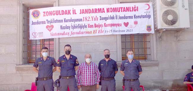 Zonguldak Alaplı İlçe Jandarma Komutanlığı nezaretinde hayata geçirilen ve Jandarma Teşkilatının 182. Kuruluş Yıldönümü nedeniyle gerçekleştirilen Kızılay işbirliğiyle “Vatandaş Jandarma El Ele Kan Bağışı Kampanyası" gerçekleştirildi. Alaplı Hükümet alanında gerçekleştirilen kan bağışı kampanyasına vatandaşlar büyük ilgi gösterirlerken, askerin kan bağışına destek vermeleri vatandaşlar tarafından memnuniyetle karşılandı.