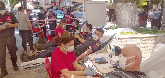 Vatandaşlar ve Jandarma kan bağışı yaptı