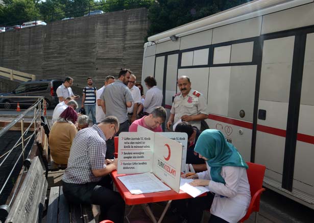 Merkezi'ne ait gezici kan bağış otobüsü de hastane önünde hazır bulundu. Milli