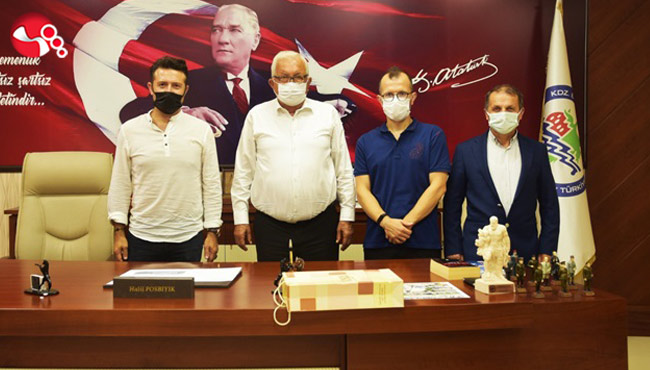 Kdz. Ereğli Belediye Başkanı Halil Posbıyık, Kdz. Ereğli Veteran Futbol Takımı Başkanı Ayhan Altuntaş, Teknik Direktör Gökhan Tan ve yöneticiler Soner Şen, Adem Demirtaş ile Hasan Ulusoy’u kabul etti.