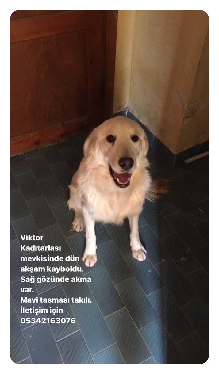 Mavi tasması olan, sağ gözünde akma olan Viktor’dan dün akşam saatlerinden beri haber alınamıyor.