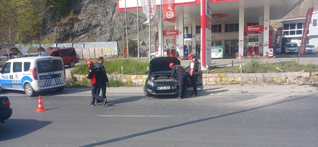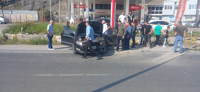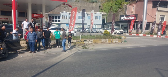 Karadeniz Ereğli ilçesinde viraja hızlı giren otomobil, sürücüsünün direksiyon hâkimiyetini kaybederek kaldırıma çarptı.