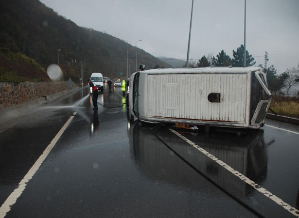 trafiğe kapatıldı. Takla atan minibüsten yola akan mazot ise Alaplı Belediyesi