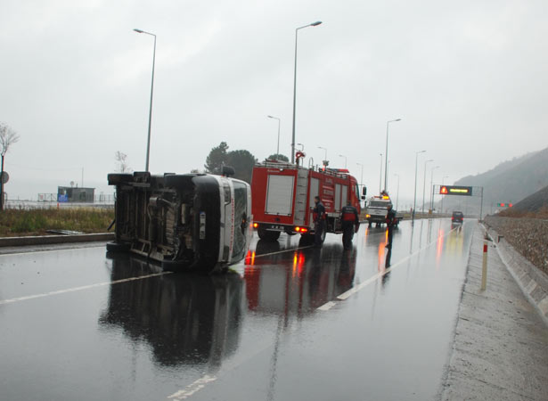 Zonguldak İstanbul karayolunda sabah saatlerinde işçi taşıyan minibüsün virajı alamayarak takla atması neticesinde 7 kişi yaralandı.