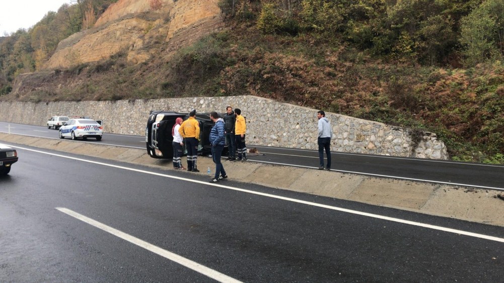 Zonguldak-Ereğli Karayolunda virajı alamayan hafif ticari kamyonet takla attı. Kazada iki kişi hafif şekilde yaralandı.
