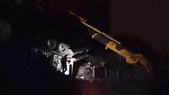 Edinilen bilgiye göre, Baştarla Mahallesi Güntepe Caddesi üzerinde Orhan Toklu’nun (59) kullandığı 06 GE 4727 plakalı tır, virajı alamayarak bahçeye uçtu. İki evin arasında ters dönerek duran tırın sürücüsü hayatını kaybederken, olay yerine sağlık, polis ve AFAD ekipleri sevk edildi. Halatla bağlanan tırın vinç yardımıyla havaya kaldırılmasının ardından Toklu'nun cansız bedenine ulaşılabildi. Yakınları olay yerinde sinir krizi geçirirken, sürücü Toklu'nun cansız bedeni Atatürk Devlet Hastanesi'ne kaldırıldı. Cumhuriyet savcısı olay yerine gelerek incelemelerde bulundu.